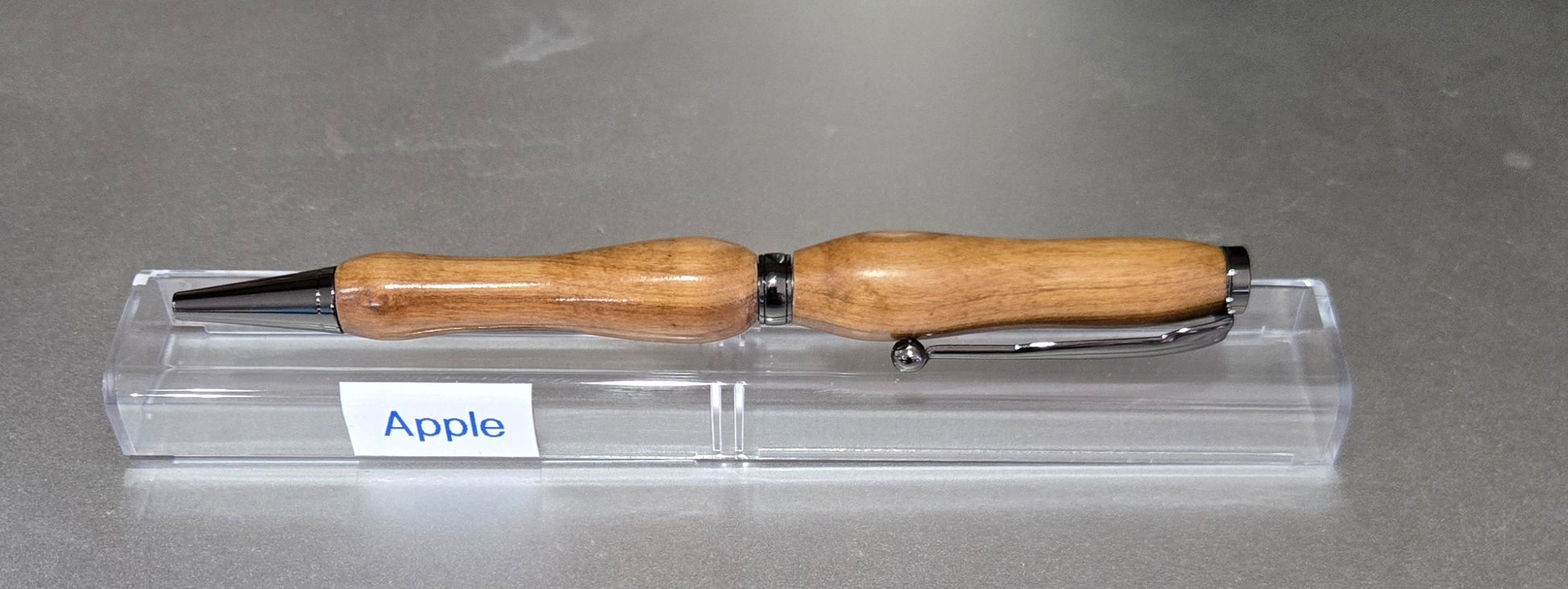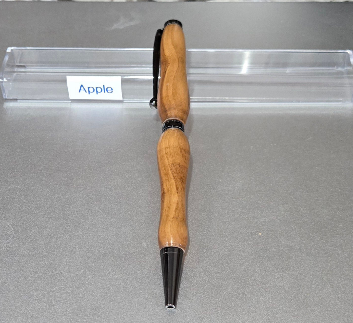Slim Line Ball Point Twist Pen Hand Turned from Apple Wood with Gun Metal Hardware Finish.