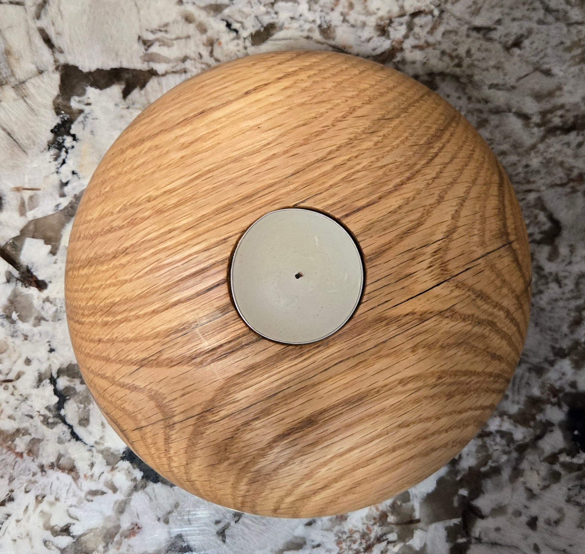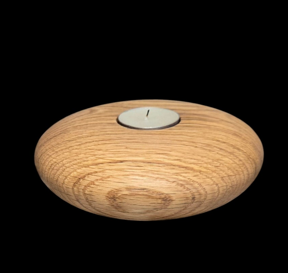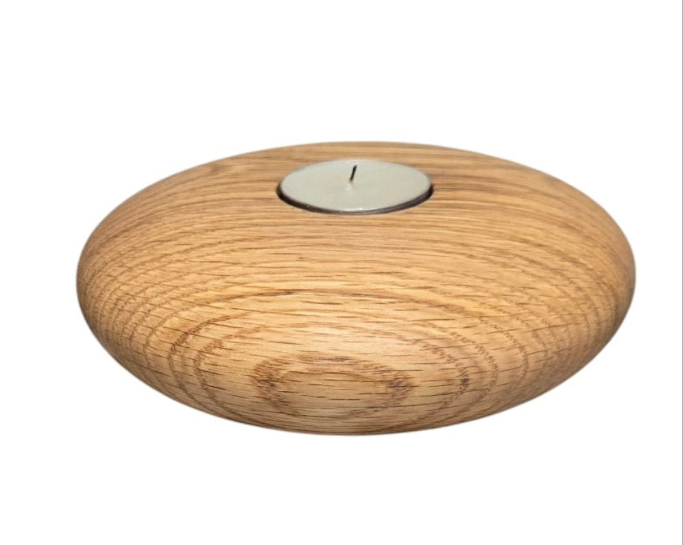 One of a kind hand turned solid Oak River Stone Tea Light Candle Holder. Finished with Danish Oil and Beeswax Polish.