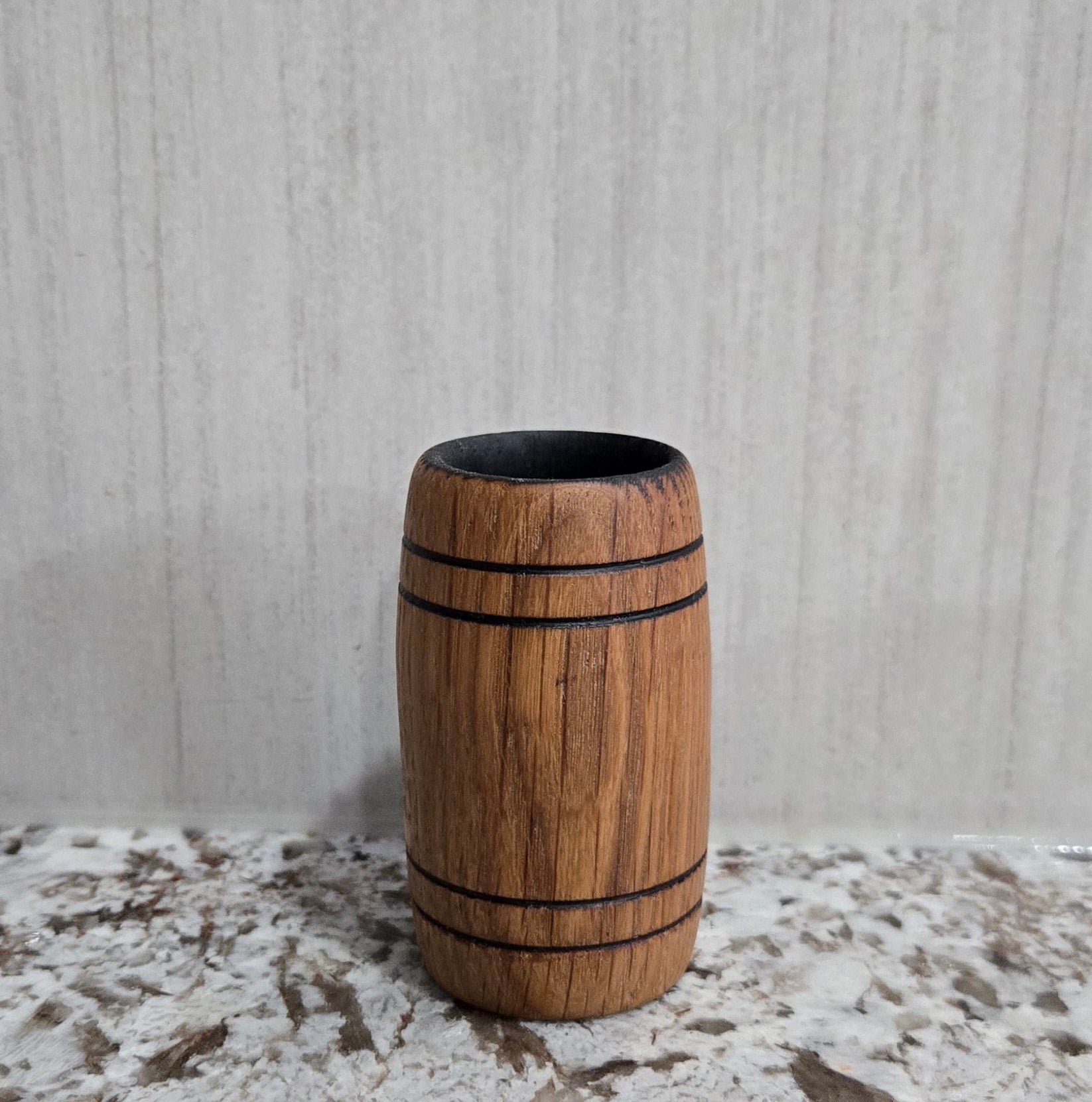 Each shot glass is unique and hand turned so no two are the same. Enhancing your whiskey experience with every sip. Charred on the inside and finished with 100% Food-Grade Beeswax and Mineral Oil sealing the wood to prevent from leaking and giving it a smooth finish.