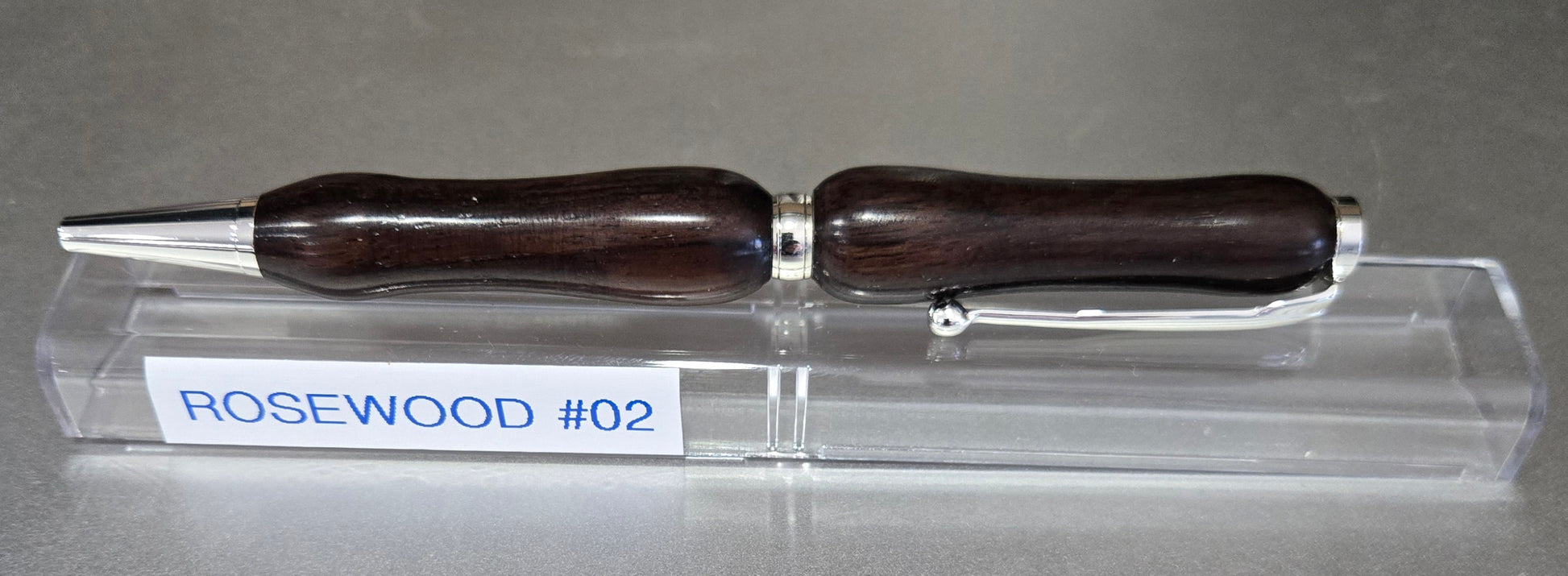 Slim Line Ball Point Twist Pen Hand Turned from Rose Wood with Chrome Hardware Finish.