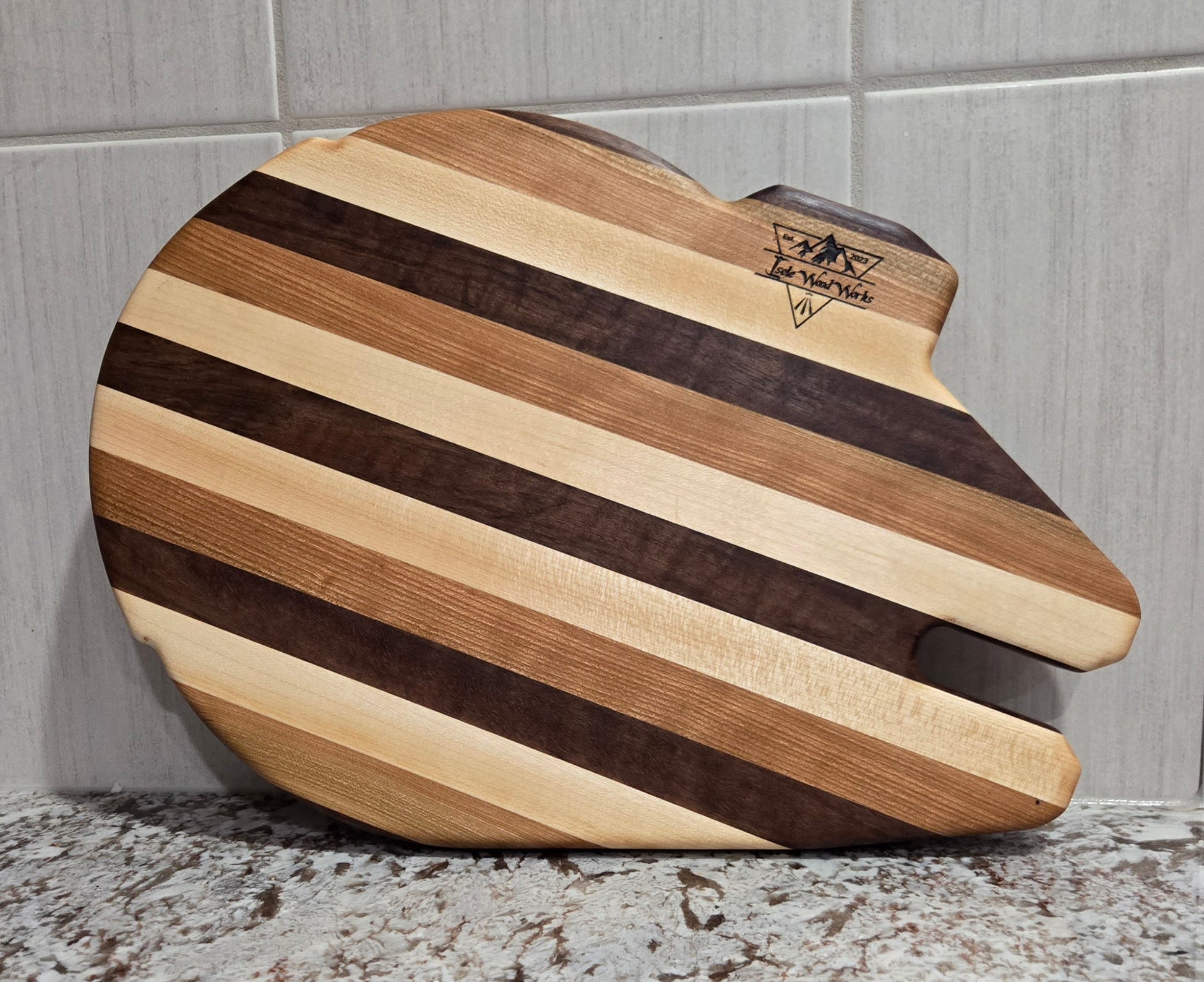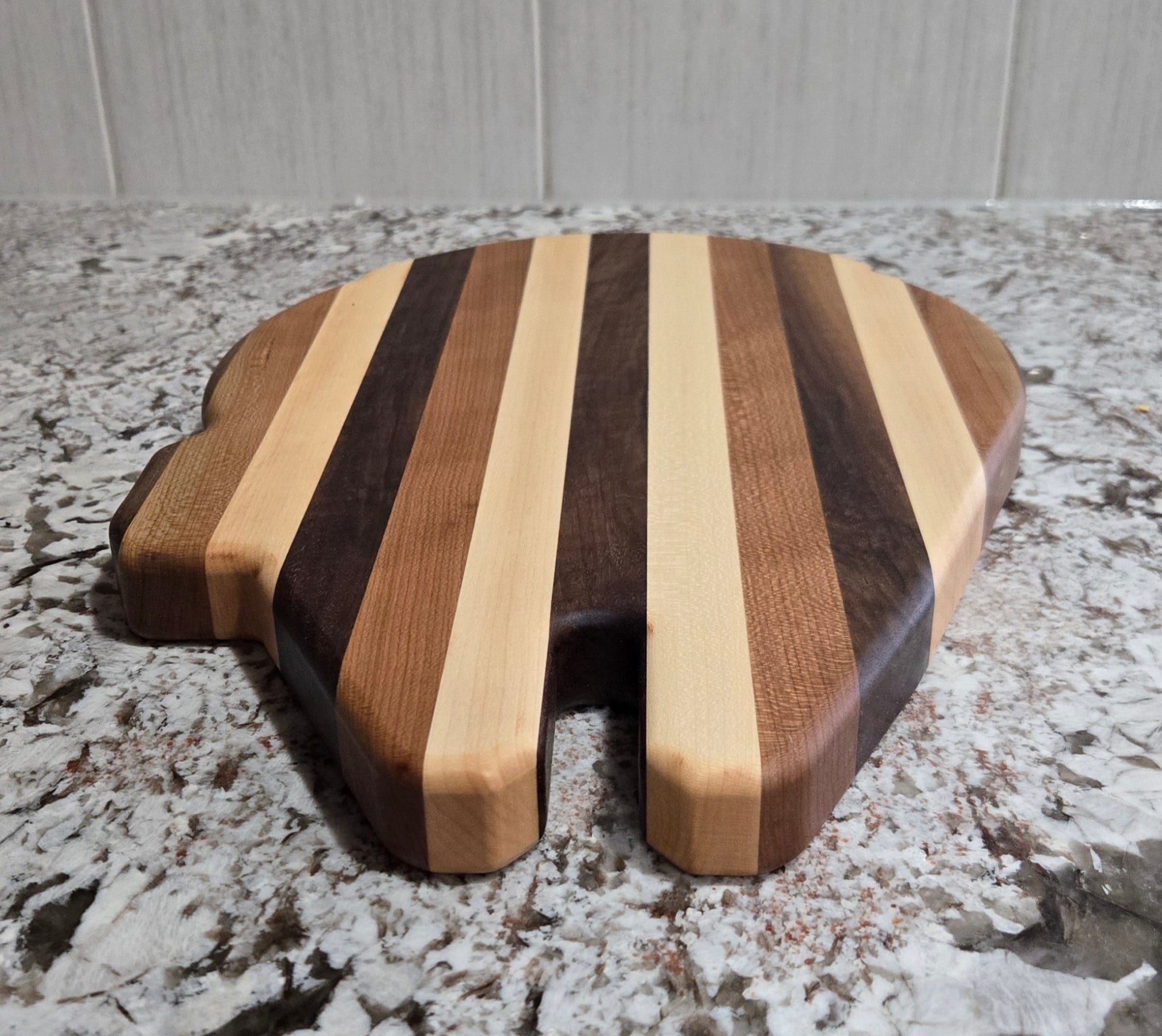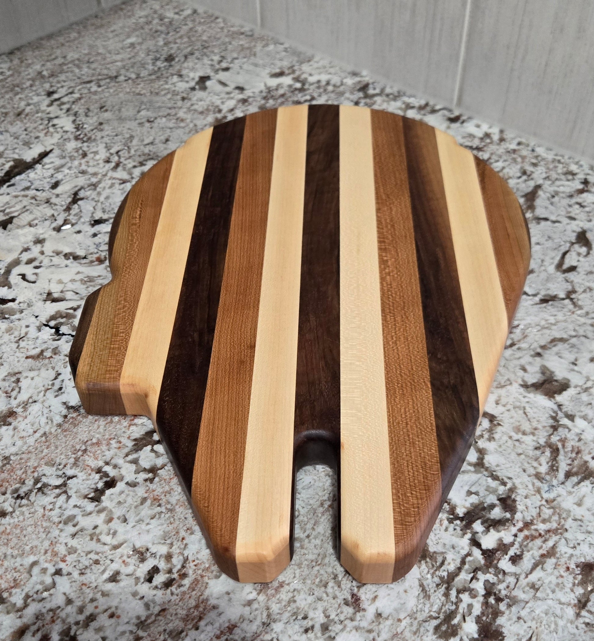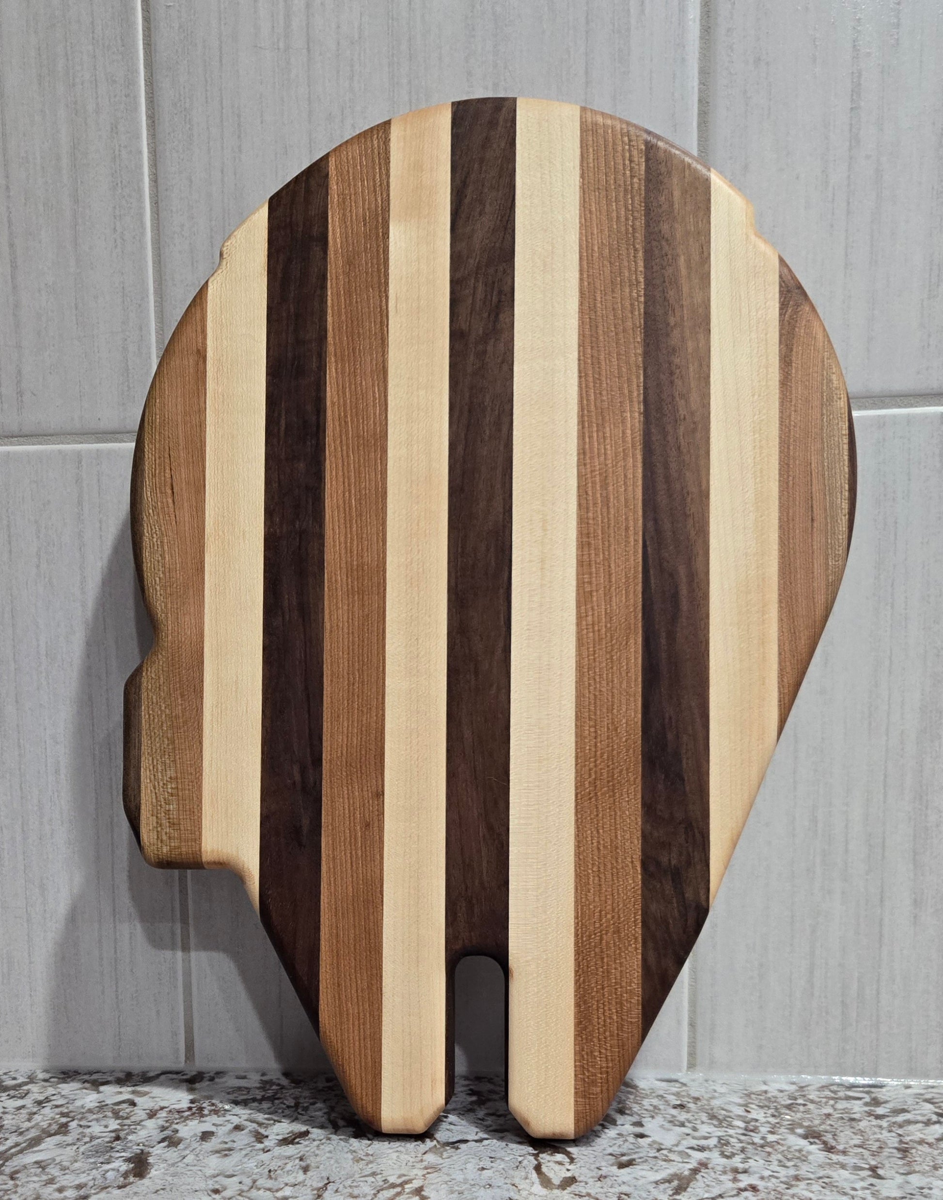Walnut, Maple and Cherry Millennium Falcon Edge Grain Cutting Board.