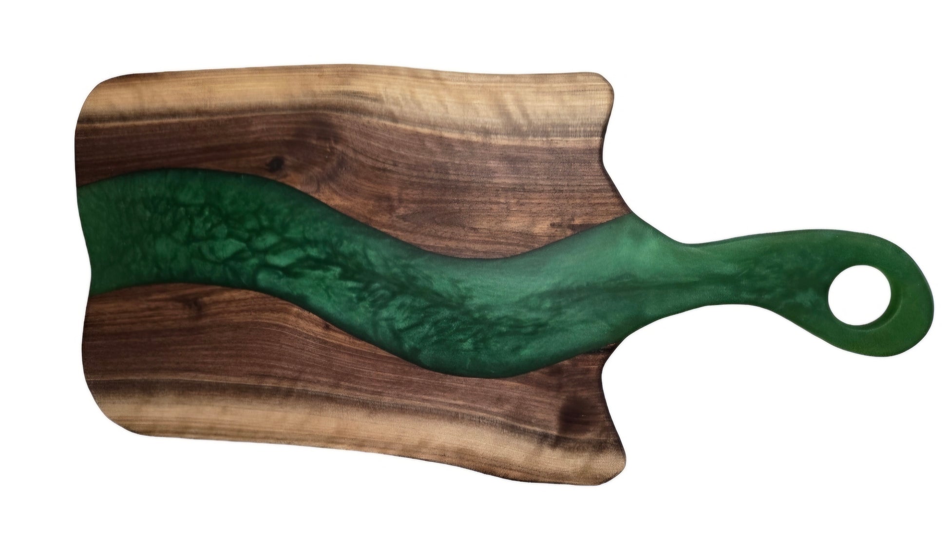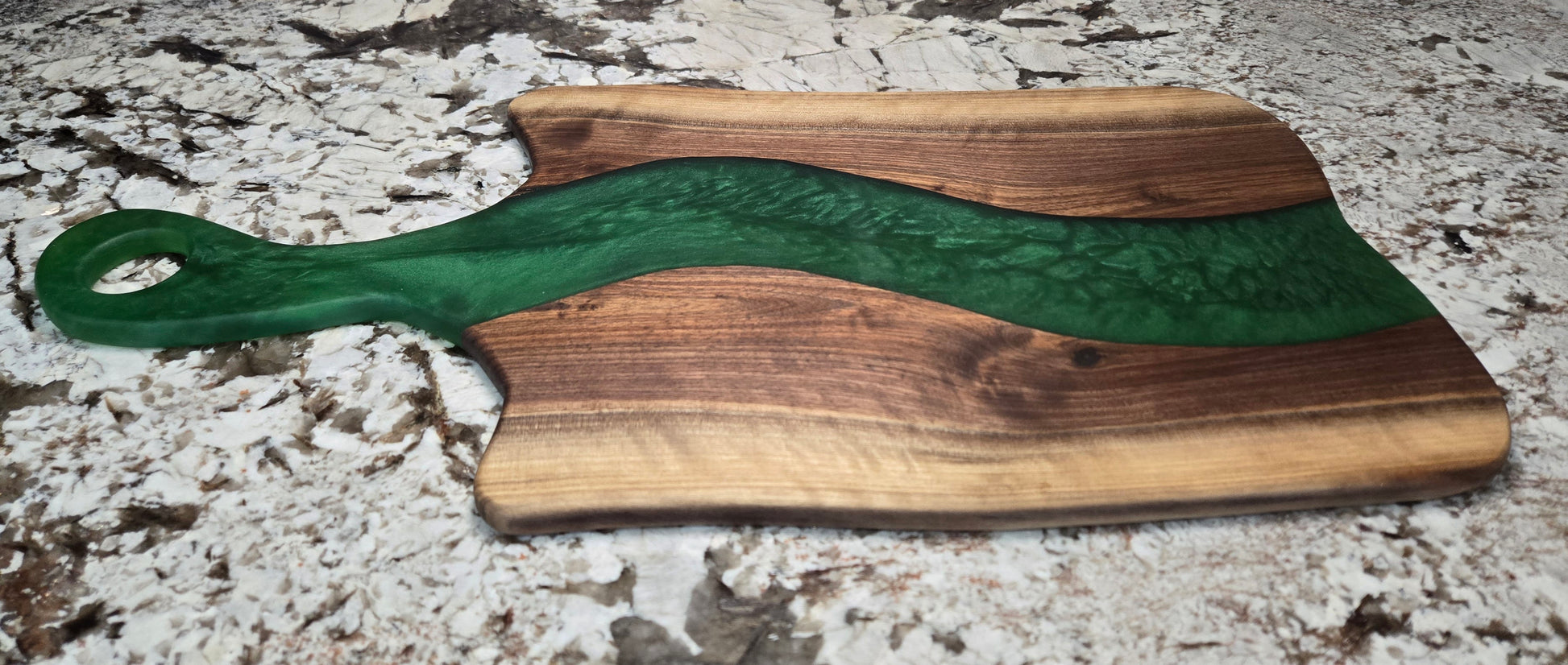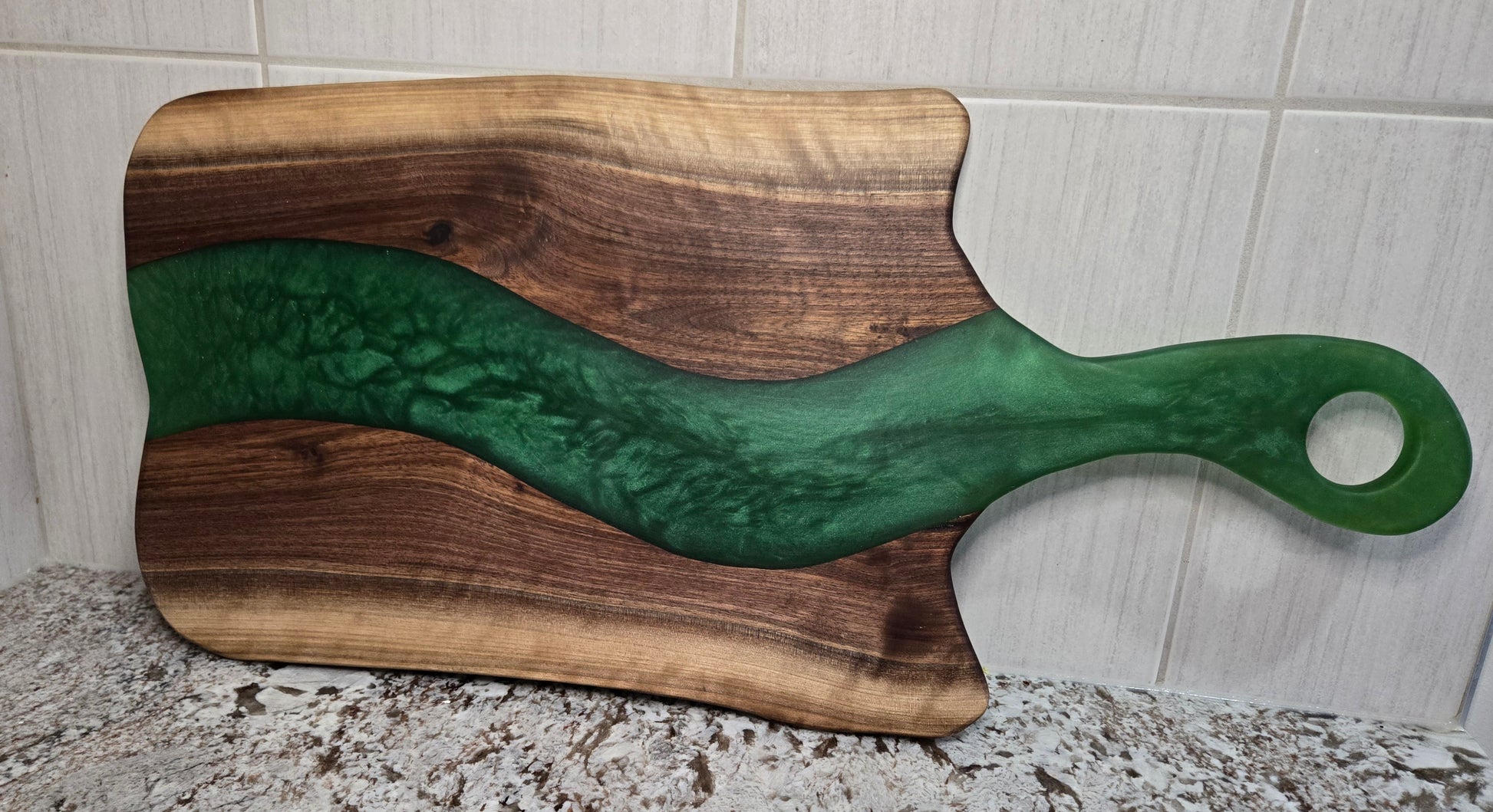 Live Edge Walnut with Avocado Green Epoxy Resin Charcuterie Board