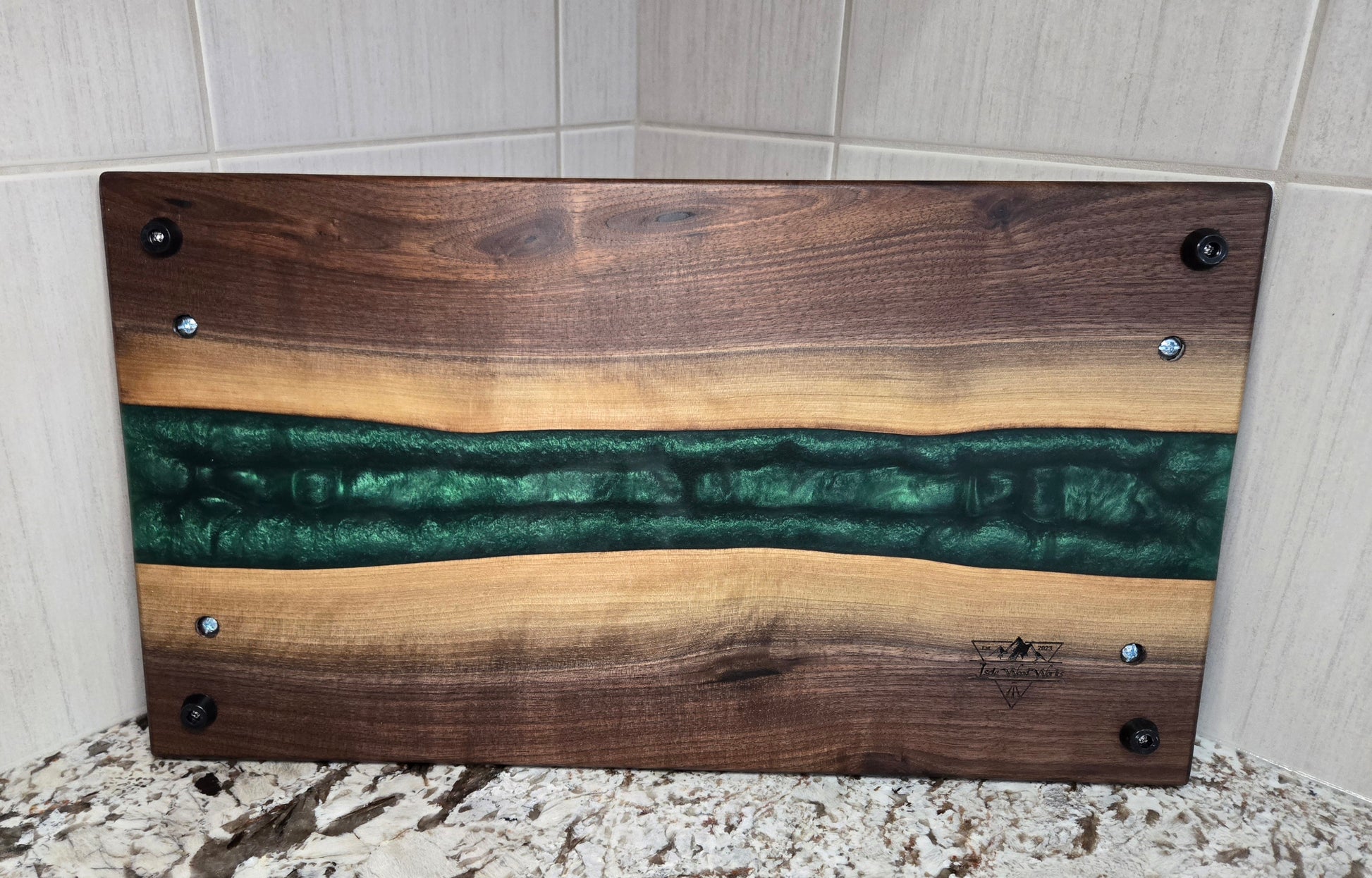 Lie Edge Walnut with Avocado Green Epoxy Resin Serving Board